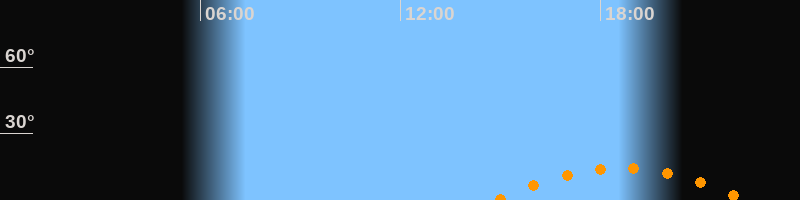| Höchster Stand (Kulmination) | 18:38 Uhr (h = 14,4°) |