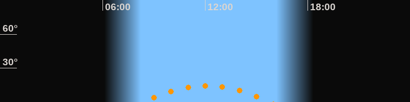 | Höchster Stand (Kulmination) | 12:03 Uhr (h = 14,4°) |