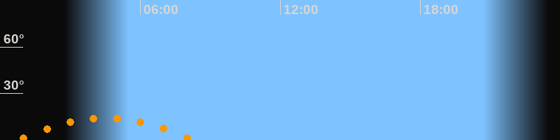 | Untergang | 08:16 Uhr im Südwesten (αAz = 229,3°) |
