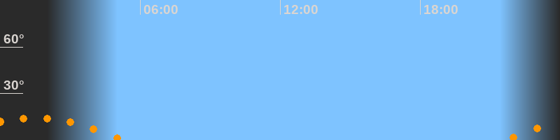 | Untergang | 05:15 Uhr im Südwesten (αAz = 229,3°) |