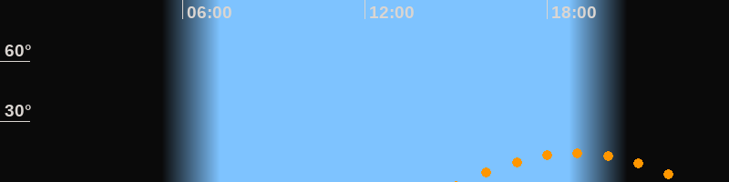 | Höchster Stand (Kulmination) | 18:56 Uhr (h = 14,4°) |