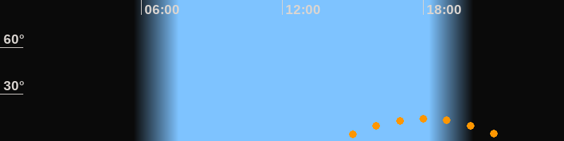 | Höchster Stand (Kulmination) | 18:01 Uhr (h = 14,4°) |