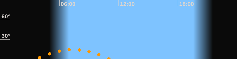 | Höchster Stand (Kulmination) | 07:20 Uhr (h = 14,4°) |
