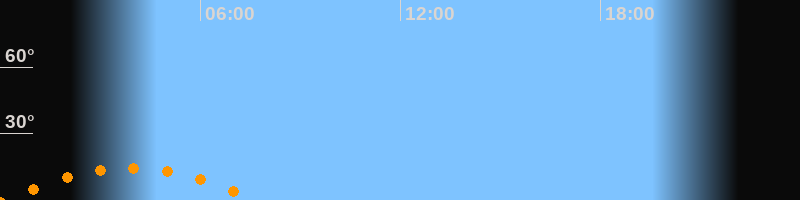| Untergang | 07:40 Uhr im Südwesten (αAz = 229,3°) |