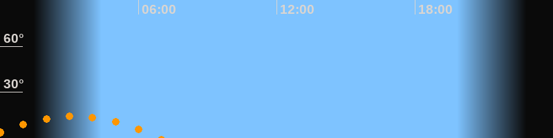 | Untergang | 06:56 Uhr im Südwesten (αAz = 229,3°) |