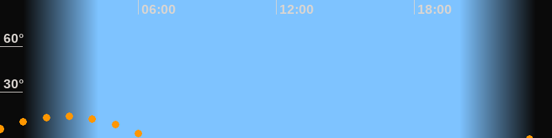 | Untergang | 06:33 Uhr im Südwesten (αAz = 229,3°) |