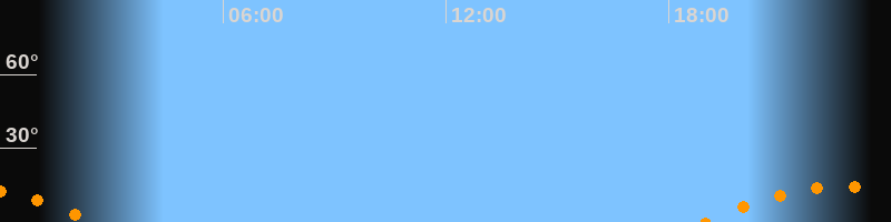 | Untergang | 02:33 Uhr im Südwesten (αAz = 229,3°) |