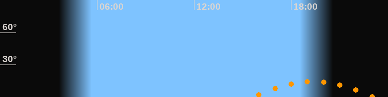 | Untergang | 23:09 Uhr im Südwesten (αAz = 229,3°) |