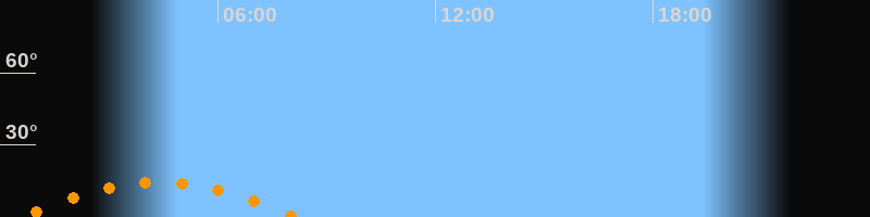| Untergang | 08:08 Uhr im Südwesten (αAz = 229,3°) |