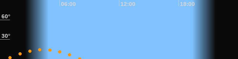 | Untergang | 08:09 Uhr im Südwesten (αAz = 229,3°) |