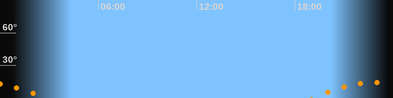 | Untergang | 02:43 Uhr im Südwesten (αAz = 229,3°) |