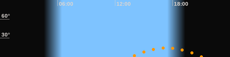 | Höchster Stand (Kulmination) | 17:23 Uhr (h = 14,4°) |