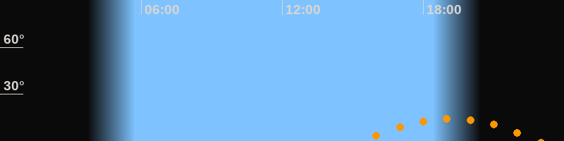 | Aufgang | 15:24 Uhr im Südosten (αAz = 130,7°) |