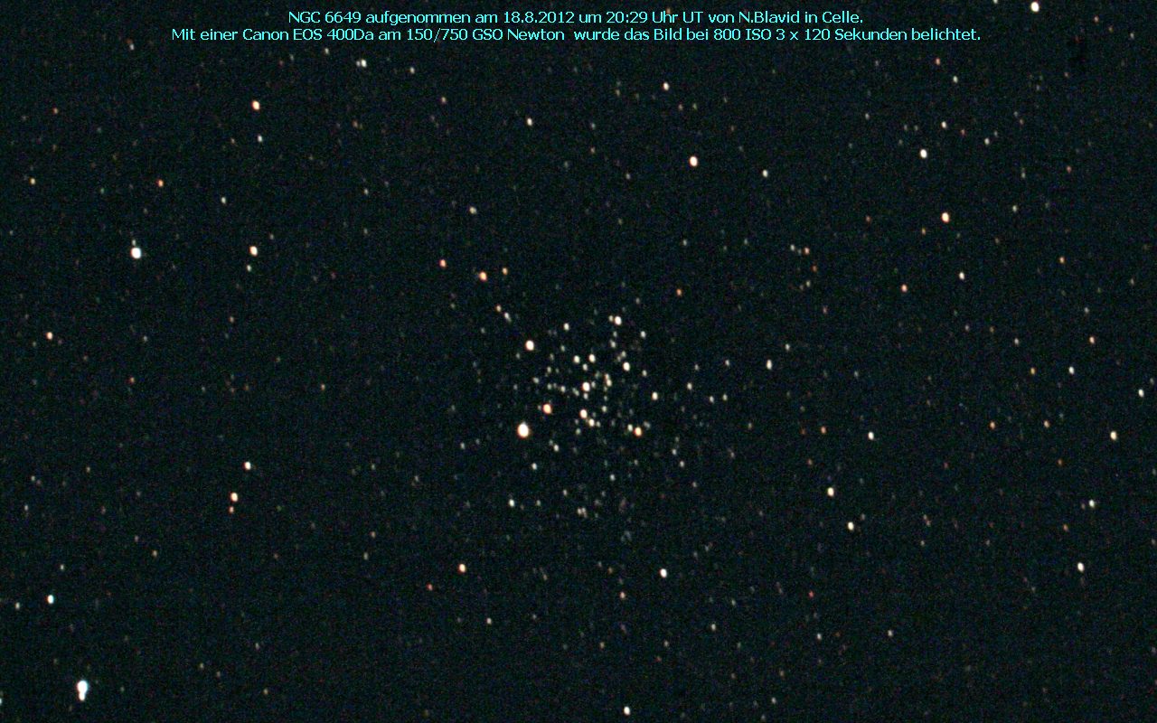 NGC 6649 ist ein ein offener Sternhaufen vom Typ OCL. Entdeckt wurde das Objekt am 27. Mai 1835 von John Herschel.