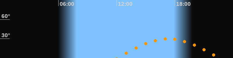 | Höchster Stand (Kulmination) | 17:19 Uhr (h = 29,7°) |