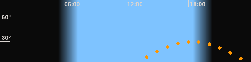 | Höchster Stand (Kulmination) | 18:22 Uhr (h = 29,7°) |