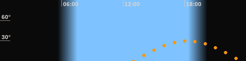 | Höchster Stand (Kulmination) | 18:14 Uhr (h = 29,7°) |