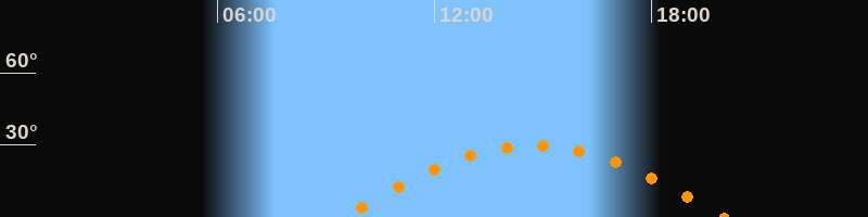 | Höchster Stand (Kulmination) | 14:45 Uhr (h = 29,7°) |