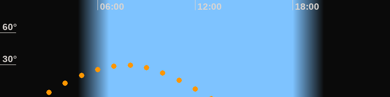 | Höchster Stand (Kulmination) | 07:40 Uhr (h = 29,7°) |