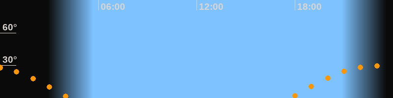 | Aufgang | 17:40 Uhr im Osten (αAz = 104,6°) |
