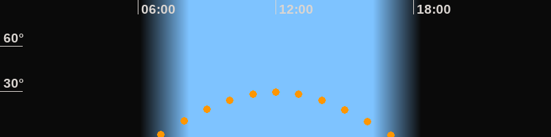 | Höchster Stand (Kulmination) | 11:58 Uhr (h = 29,7°) |