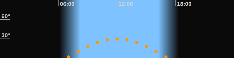 | Höchster Stand (Kulmination) | 11:59 Uhr (h = 29,7°) |