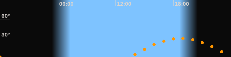 | Höchster Stand (Kulmination) | 18:46 Uhr (h = 29,7°) |