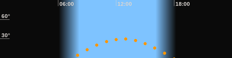 | Höchster Stand (Kulmination) | 12:41 Uhr (h = 29,7°) |