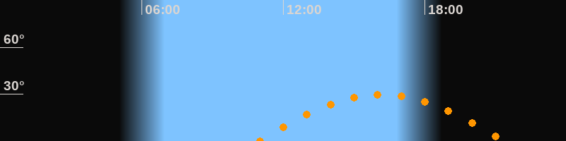 | Höchster Stand (Kulmination) | 16:10 Uhr (h = 29,7°) |
