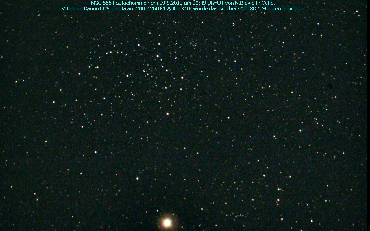 NGC 6664 ist ein ein offener Sternhaufen vom Typ III 2 m. Entdeckt wurde das Objekt 1784 von Friedrich Wilhelm Herschel.