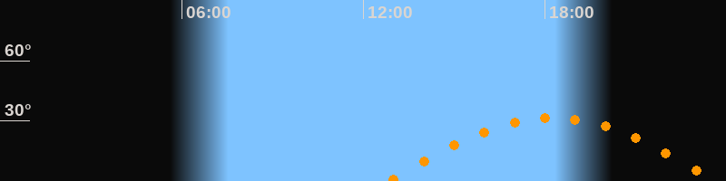 | Höchster Stand (Kulmination) | 18:16 Uhr (h = 31,5°) |