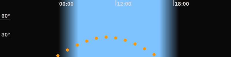 | Höchster Stand (Kulmination) | 11:06 Uhr (h = 31,5°) |