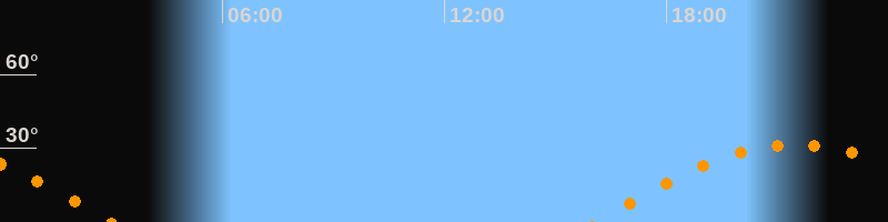 | Aufgang | 16:07 Uhr im Osten (αAz = 101,6°) |