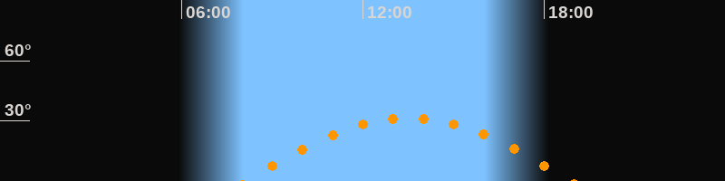 | Höchster Stand (Kulmination) | 13:30 Uhr (h = 31,5°) |