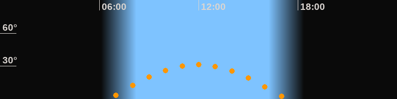 | Höchster Stand (Kulmination) | 11:56 Uhr (h = 31,5°) |