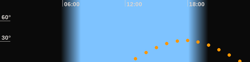 | Höchster Stand (Kulmination) | 17:47 Uhr (h = 31,5°) |