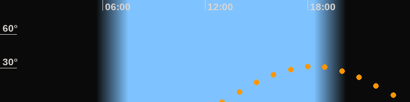 | Höchster Stand (Kulmination) | 18:19 Uhr (h = 31,5°) |