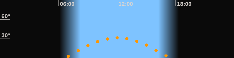 | Höchster Stand (Kulmination) | 12:02 Uhr (h = 31,5°) |