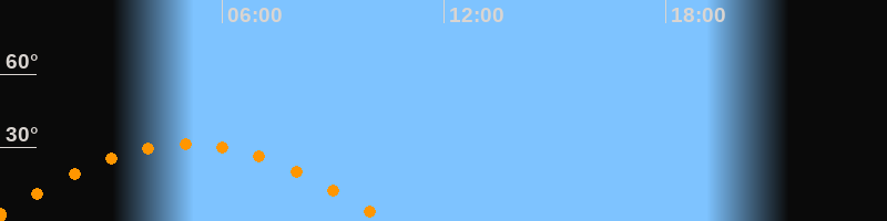 | Höchster Stand (Kulmination) | 05:04 Uhr (h = 31,5°) |