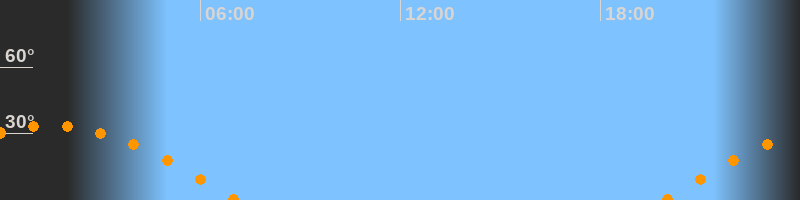 | Untergang | 07:05 Uhr im Westen (αAz = 261,5°) |