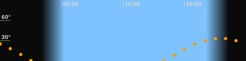 | Untergang | 03:09 Uhr im Westen (αAz = 261,5°) |