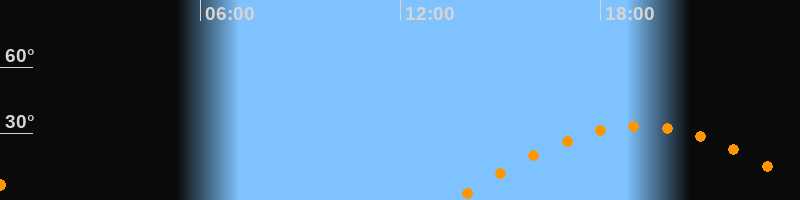 | Höchster Stand (Kulmination) | 19:11 Uhr (h = 33,5°) |