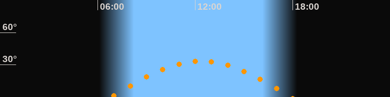 | Höchster Stand (Kulmination) | 12:21 Uhr (h = 33,5°) |