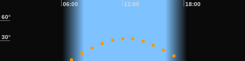 | Höchster Stand (Kulmination) | 12:17 Uhr (h = 33,5°) |