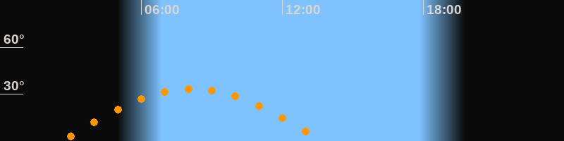 | Höchster Stand (Kulmination) | 08:10 Uhr (h = 33,5°) |