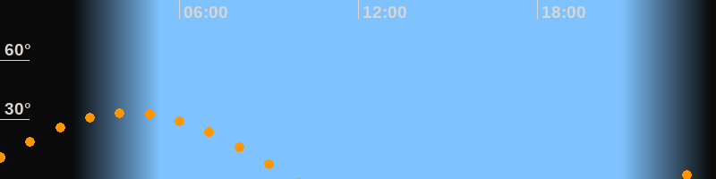 | Untergang | 09:53 Uhr im Westen (αAz = 261,5°) |