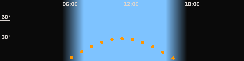 | Höchster Stand (Kulmination) | 11:57 Uhr (h = 33,5°) |