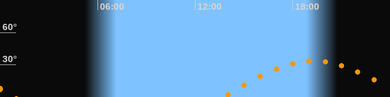 | Höchster Stand (Kulmination) | 19:17 Uhr (h = 33,5°) |