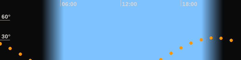 | Untergang | 03:02 Uhr im Westen (αAz = 261,5°) |