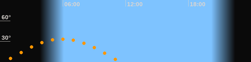 | Höchster Stand (Kulmination) | 05:55 Uhr (h = 33,5°) |